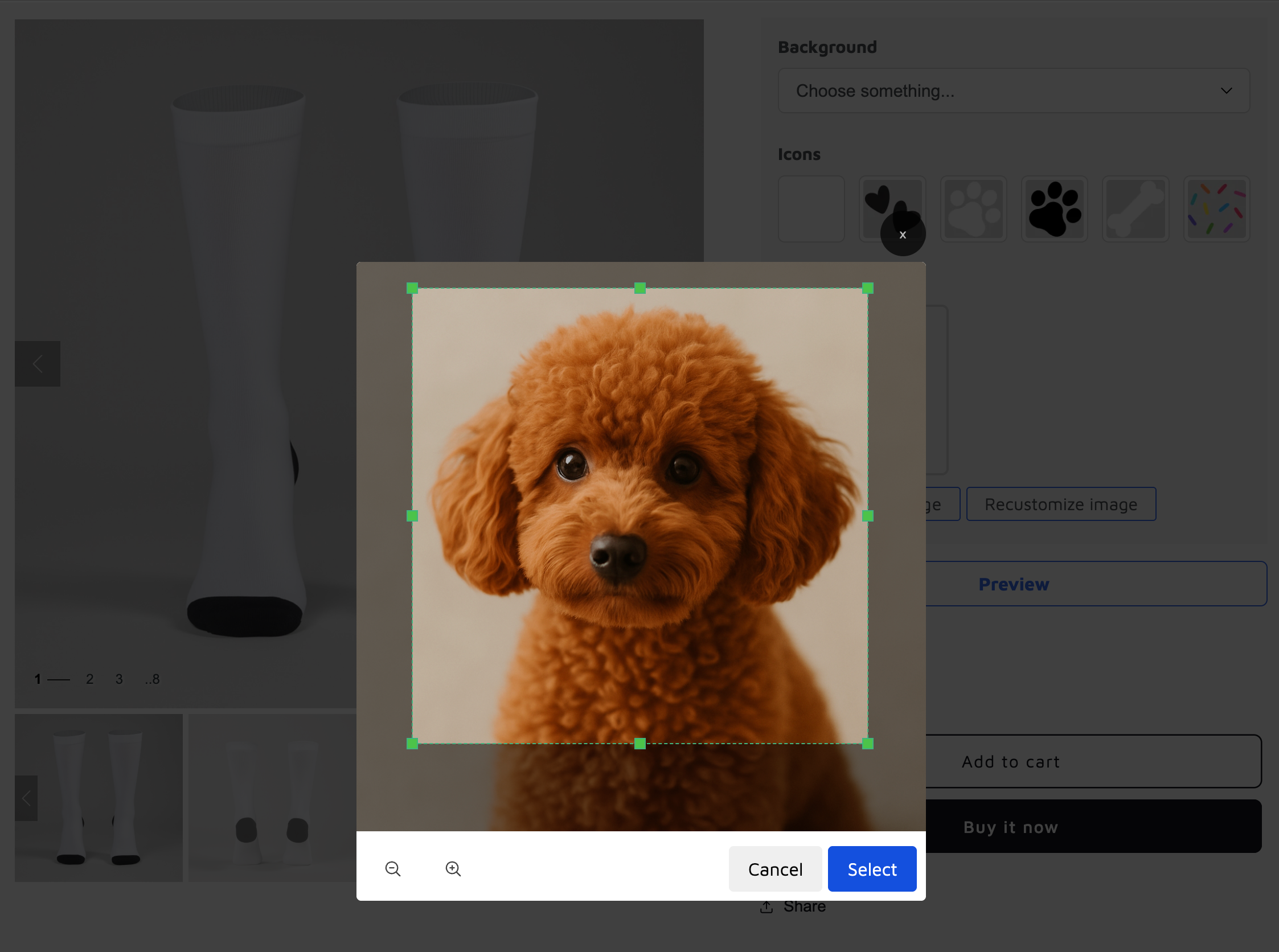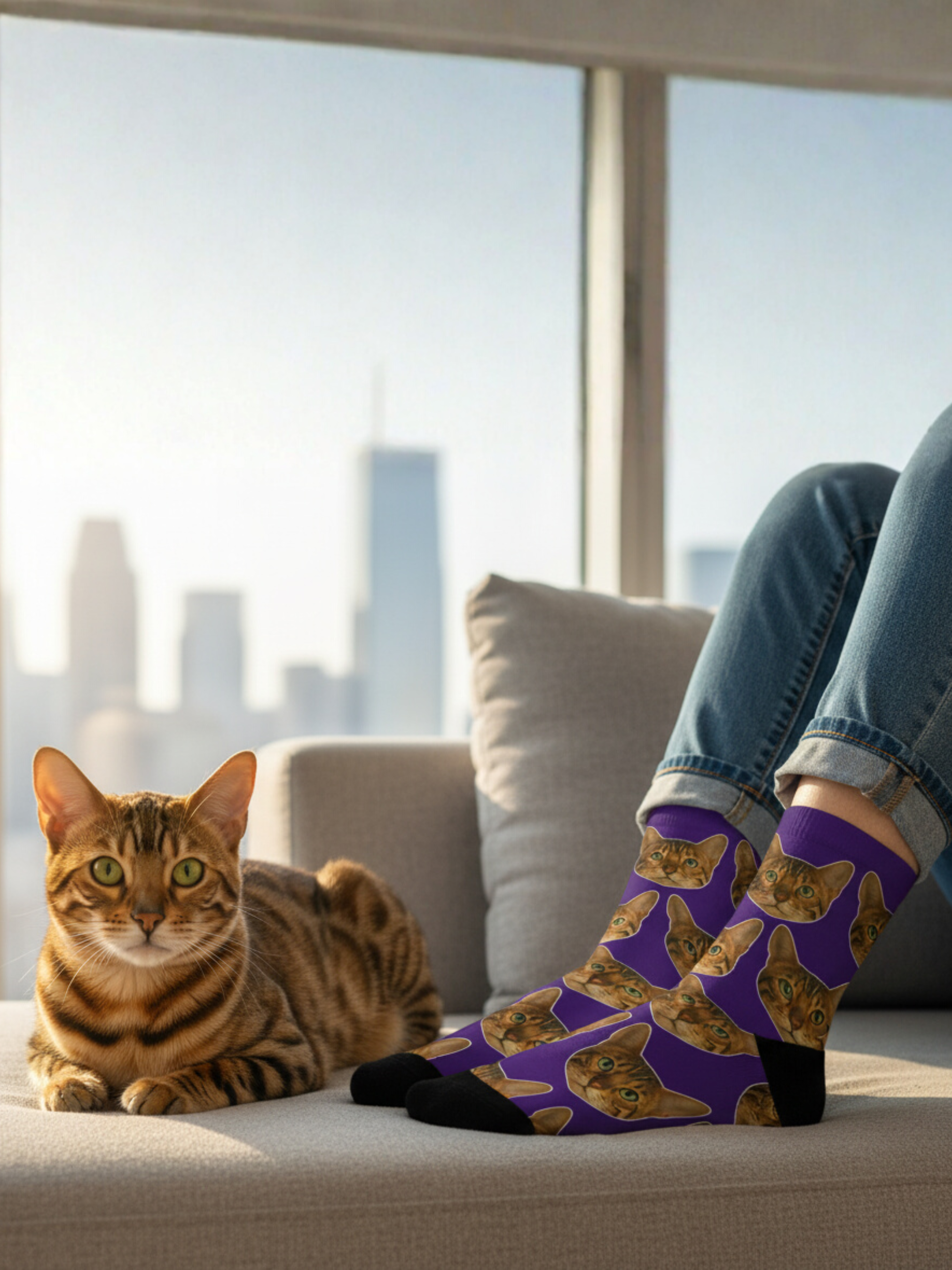 Sube la imagen y eliminaremos el fondo automáticamente. Elige el color y el diseño del fondo de tus calcetines.